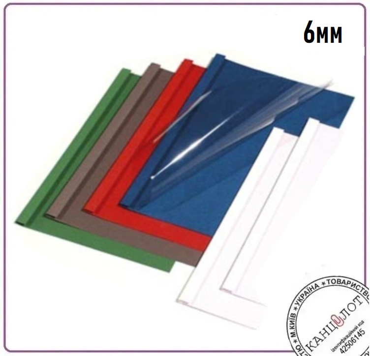 Лицьова сторона - прозора, тильна - картон з тисненням "під льон". Скріплює 41-60 аркушів.